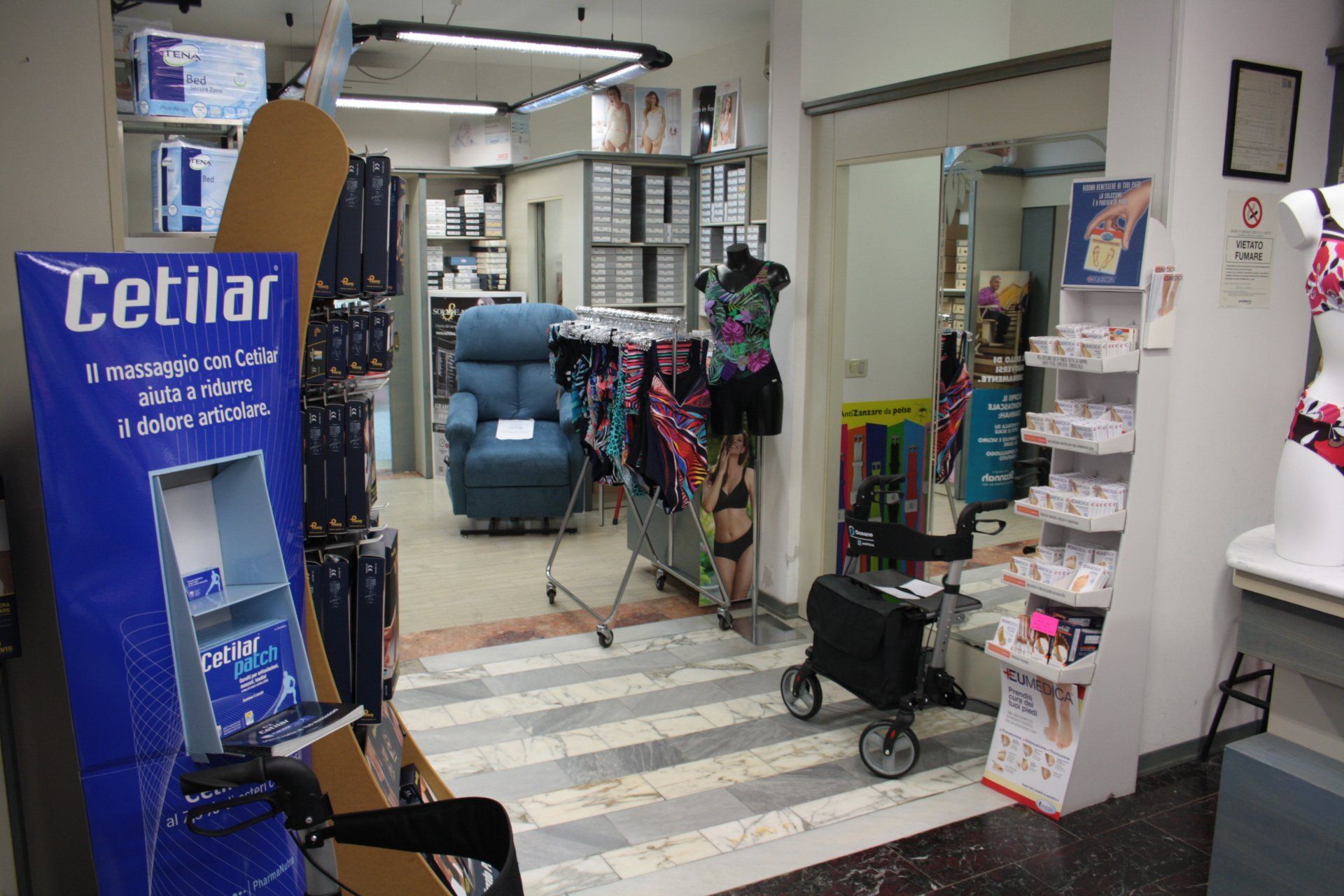 Presso il centro è possibile trovare anche un'ampia gamma di corsetteria e abbigliamento intimo, con taglie comode fino alla 56-50, costumi da bagno per tutte le età, scarpe e sandali comodi e resistenti per bambini, plantari su misura per garantire la corretta distribuzione del peso sul piede e calze riposanti, terapeutiche e preventive per alleviare problemi circolatori ed eventuali dolori ai piedi.